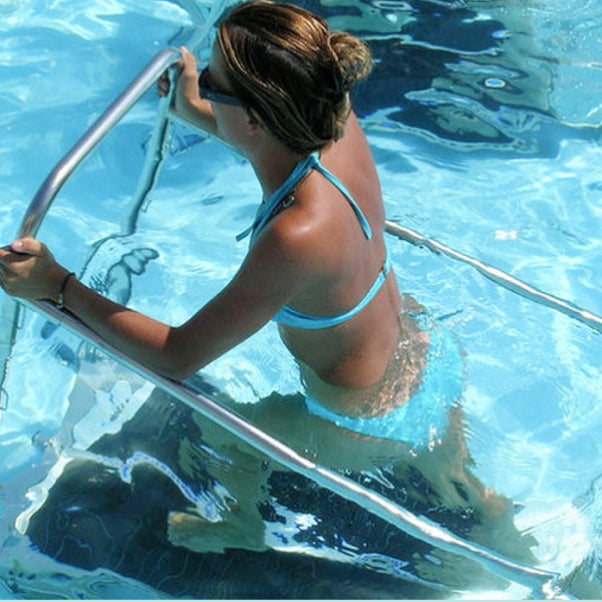 Running in water on a swimming pool treadmill may seem unusual but water eliminates the shock impact of running and improves body balance and blood circulation. Immersed half-way up your chest in refreshing water, you have to actively move your legs against the water resistance while the foot is sliding over the rollers on the treadmill underwater.